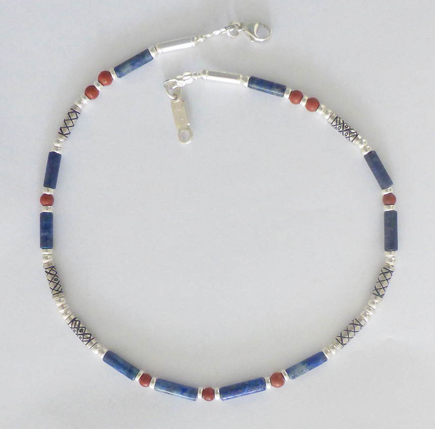 N12 Etched Silver Lapis Lazuli and Red Jasper Necklace £155.00
